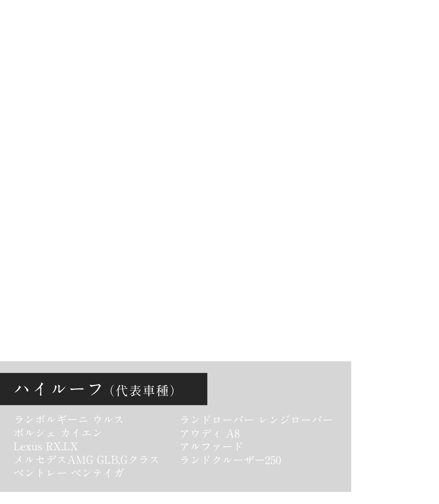 | ミドルルーフ車 | 1,800mm | 2,500kg | 1,960mm | 100mm |
