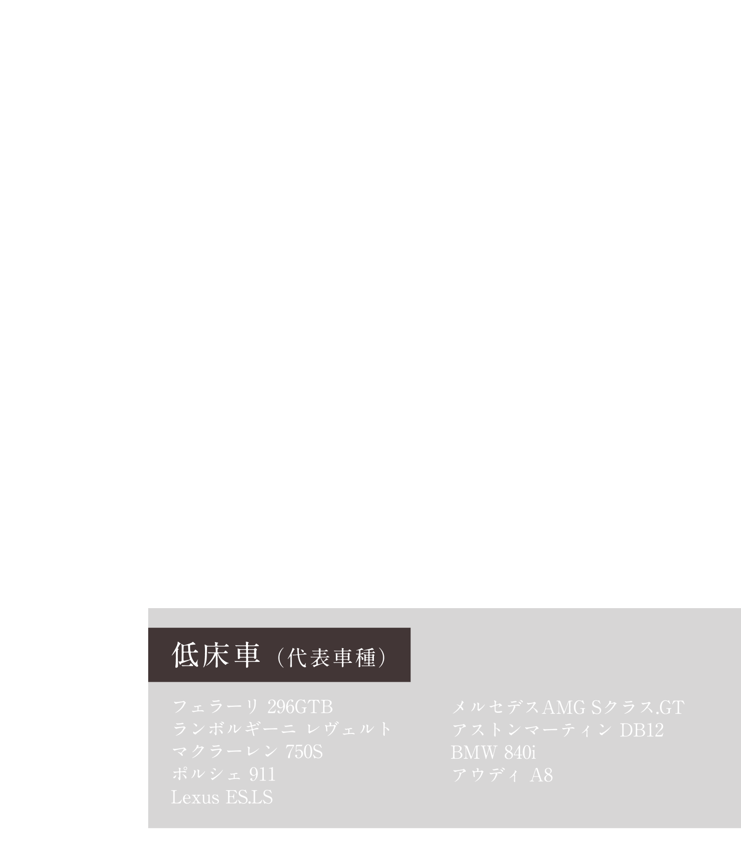 | 普通乗用車(低床車対応) | 1,600mm | 2,400kg | 2,050mm | 90mm |